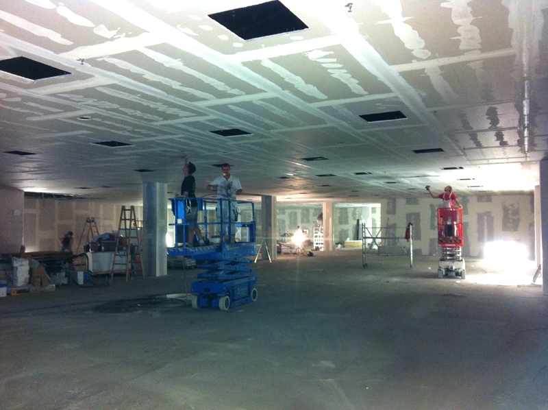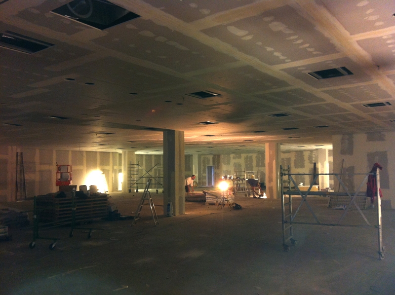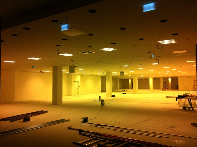 Umbau: 1300 m² Sämtliche Trockenbauarbeiten: 1300m² Decke, 1050 m² Wandbekleidungen Malerarbeiten: 2300 m² Farben